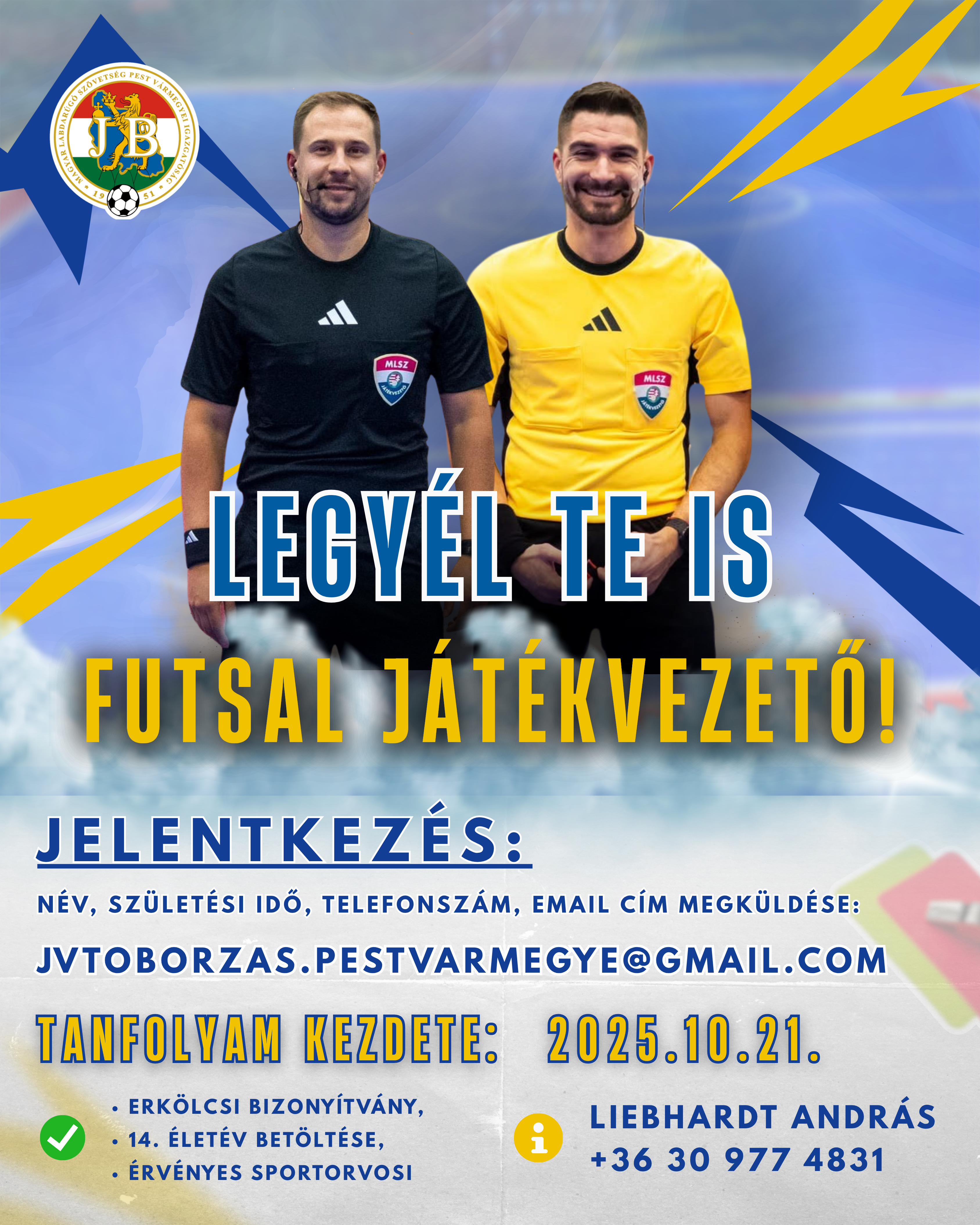 Október 21-én, kedden alapfokú futsal játékvezetői tanfolyam indul Pest vármegyében.